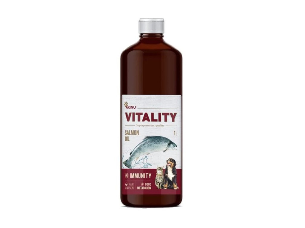Hledáte chutný a zdravý doplněk stravy pro svého psa nebo kočku? Lososový olej z Norska Akinu VITALITY je ideální volbou. Pomáhá zlepšovat kvalitu srsti, podporuje imunitní systém, zrychluje metabolismus a dodává energii. Navíc má tak lahodnou chuť, že ho zvířata často přijímají přímo ze lžičky.