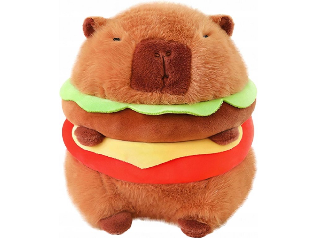Hledáte originální plyšovou hračku, která zaujme na první pohled? Kapybara hamburger je tady, aby rozveselila každého! Tento roztomilý plyšák spojuje populární kapybaru s legračním burgerovým designem, a díky velikosti 30 cm je skvělým mazlíkem i stylovým doplňkem dětského pokojíčku. Vyrobený z měkkého a jemného plyše, příjemný na dotek a ideální na mazlení i hraní.