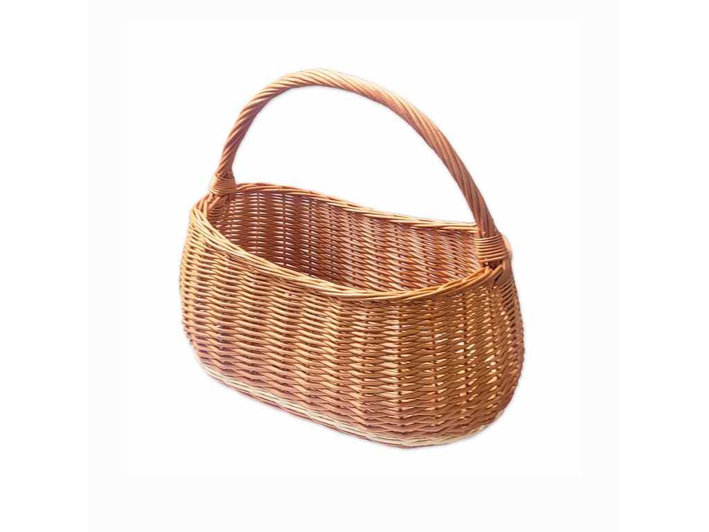 Elegantní proutěný košík v přírodní barvě – vhodný na nákupy, pikniky nebo ovoce. Košík má zajímavý tvar a je kvalitně vypletený, perfektně drží tvar a potraviny v něm nošené zůstávají nepomačkané. Tento košík je velmi elegantním doplňkem, vyrobeným jen z ryze přírodních materiálů.